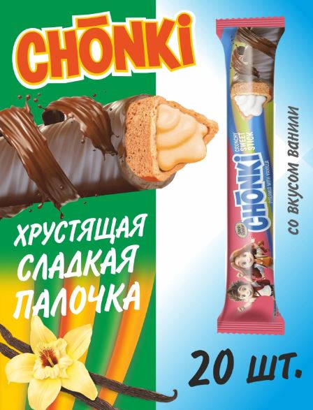 —КАНДИ-КЛАБ CHONKI хрустящие сладкие палочки вкус ваниль 20гр 12*20