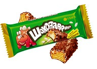 Укрупненные вафельные конфеты из хрустящих вафель под слоем мягкой карамели и шоколадной глазури с добавлением хрустящих криспи. Вид упаковки: "флоу-пак"