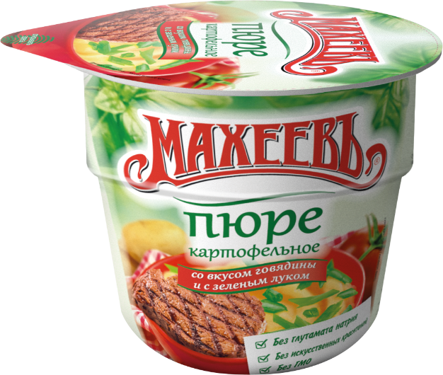 —МАХЕЕВЪ Карт.пюре Б/П со вкусом говядины и зеленым луком 40гр стакан 1*32